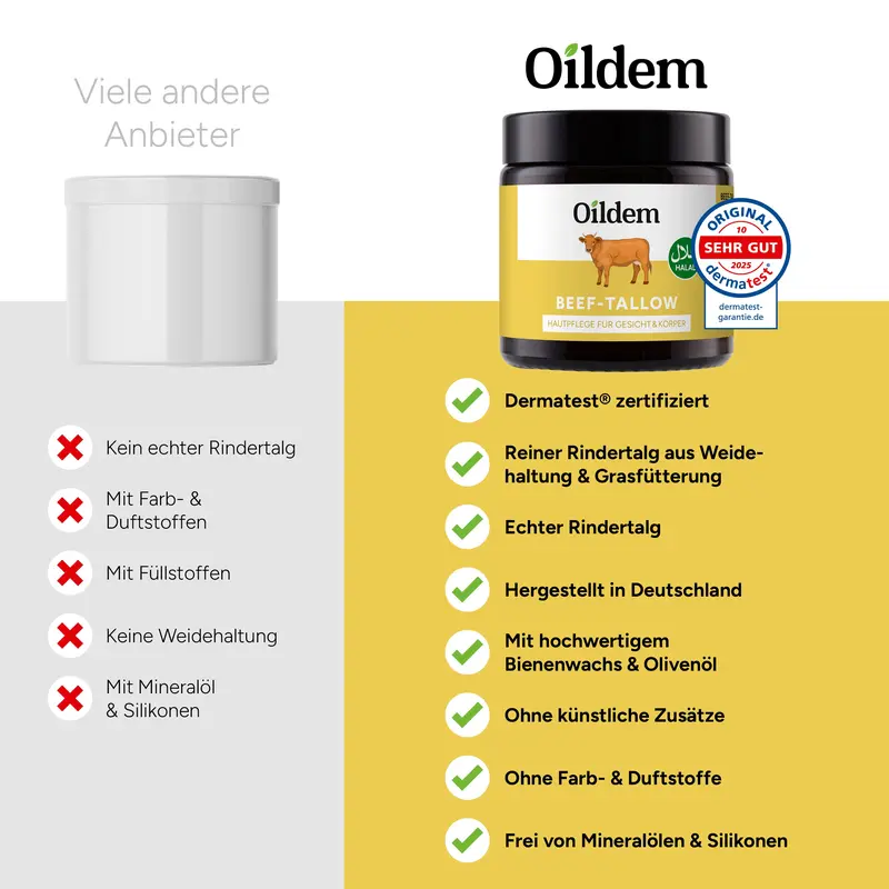 Halal-Optik top! Oildem Creme (110ml) Rindertalg hydratisiert gut, Haut glatt.?
